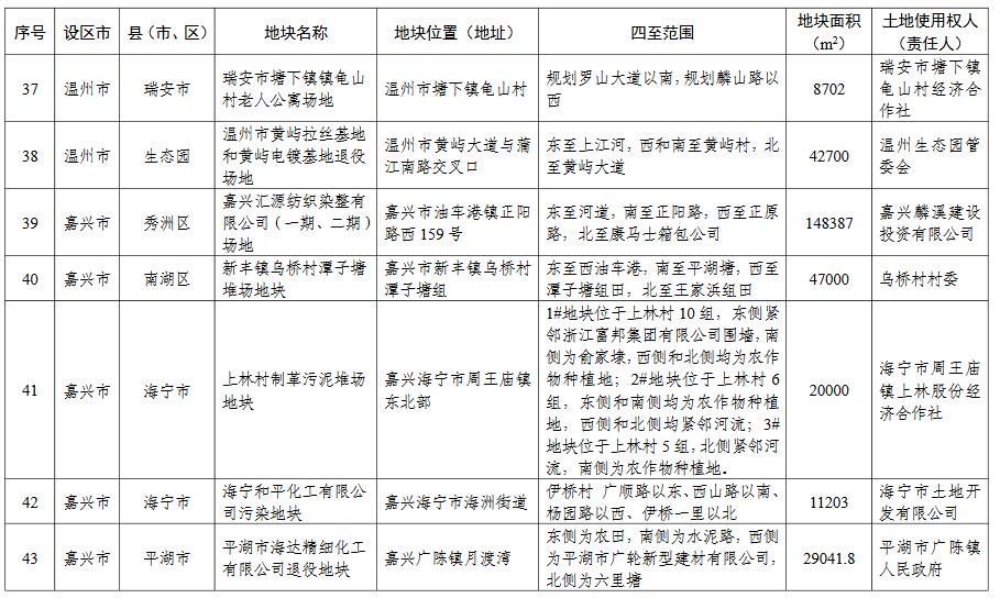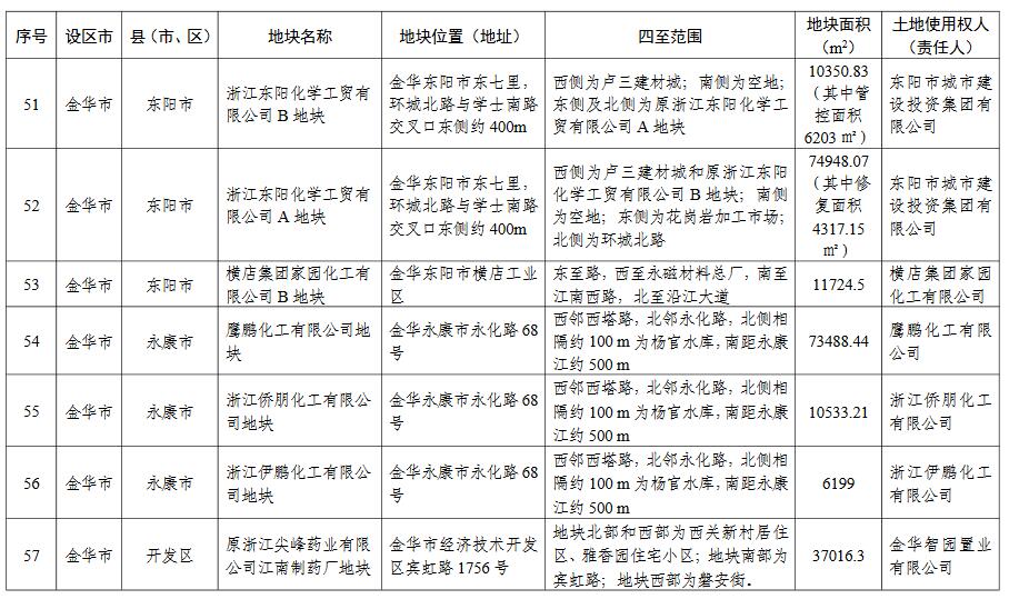 附件:浙江省建設用地土壤污染風險管控和修復名錄(第一批)